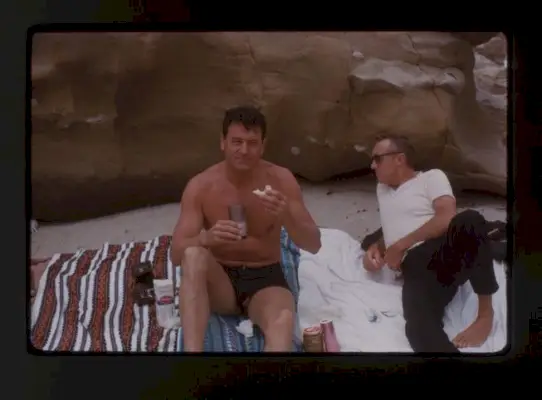 Rock Hudson (esquerra) amb un amic en una excursió a la platja, 1963Cortesia de Martin Flaherty i The Rock Hudson Estate Collection/HBO